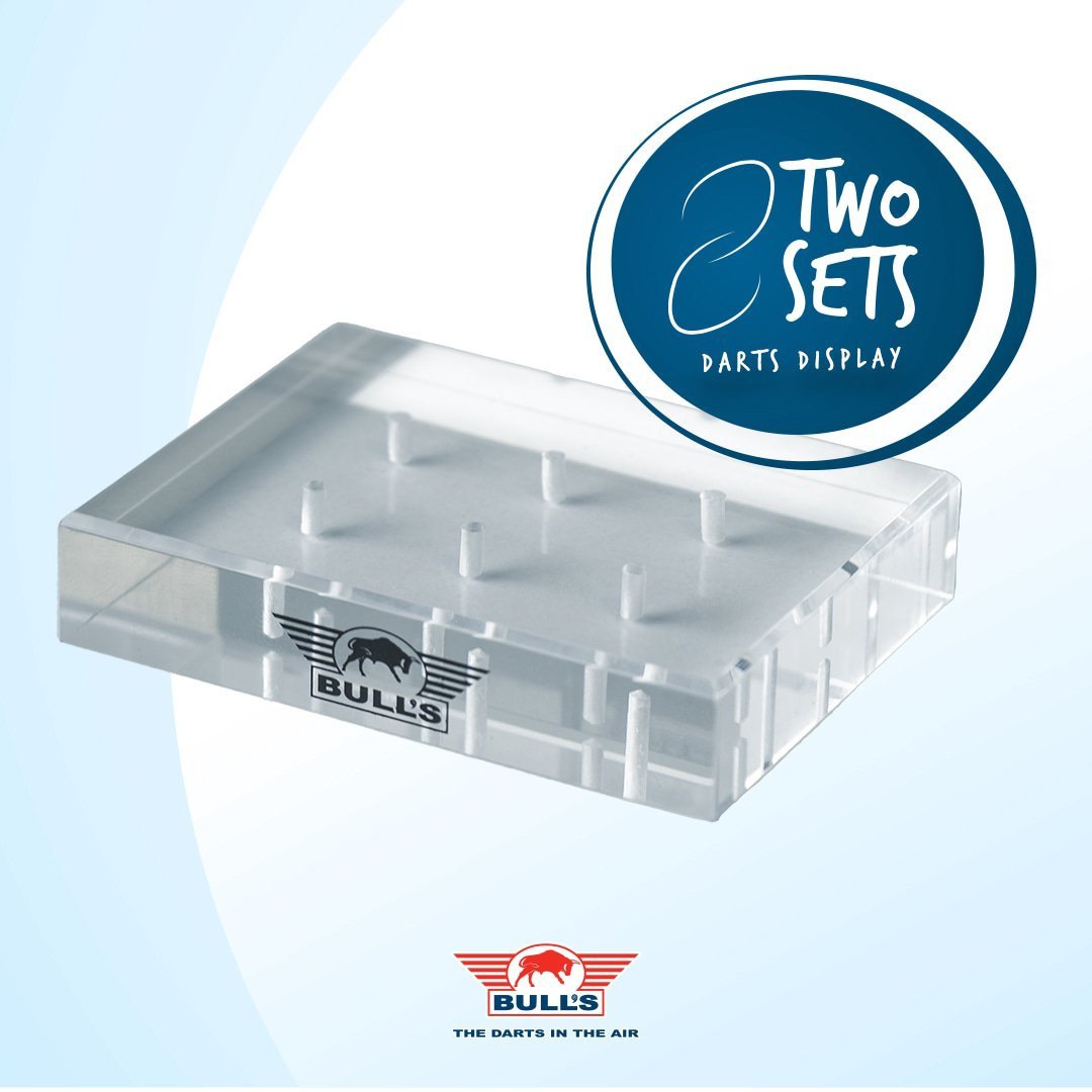 The clear Bull's Two-set Darts Display is a straightforward, but intriguing, dart display. The flat minimalistic shape of this stand gives your darts a wonderful look when they are not flying. Two fully constructed sets of darts can be stored in this stand, for a total of 6 darts!