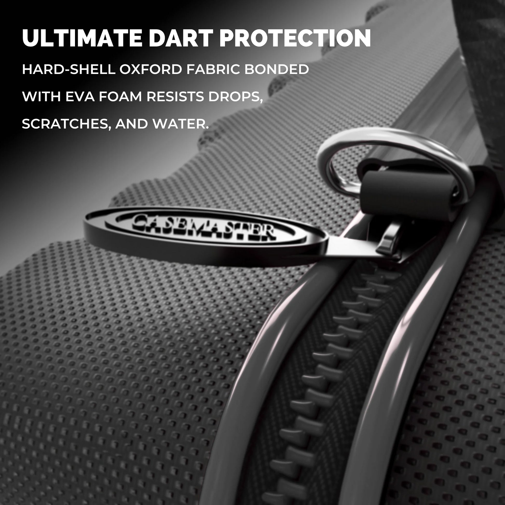 - Ultimate Dart Protection – Hard-shell Oxford fabric bonded with EVA foam resists drops, scratches, and water.