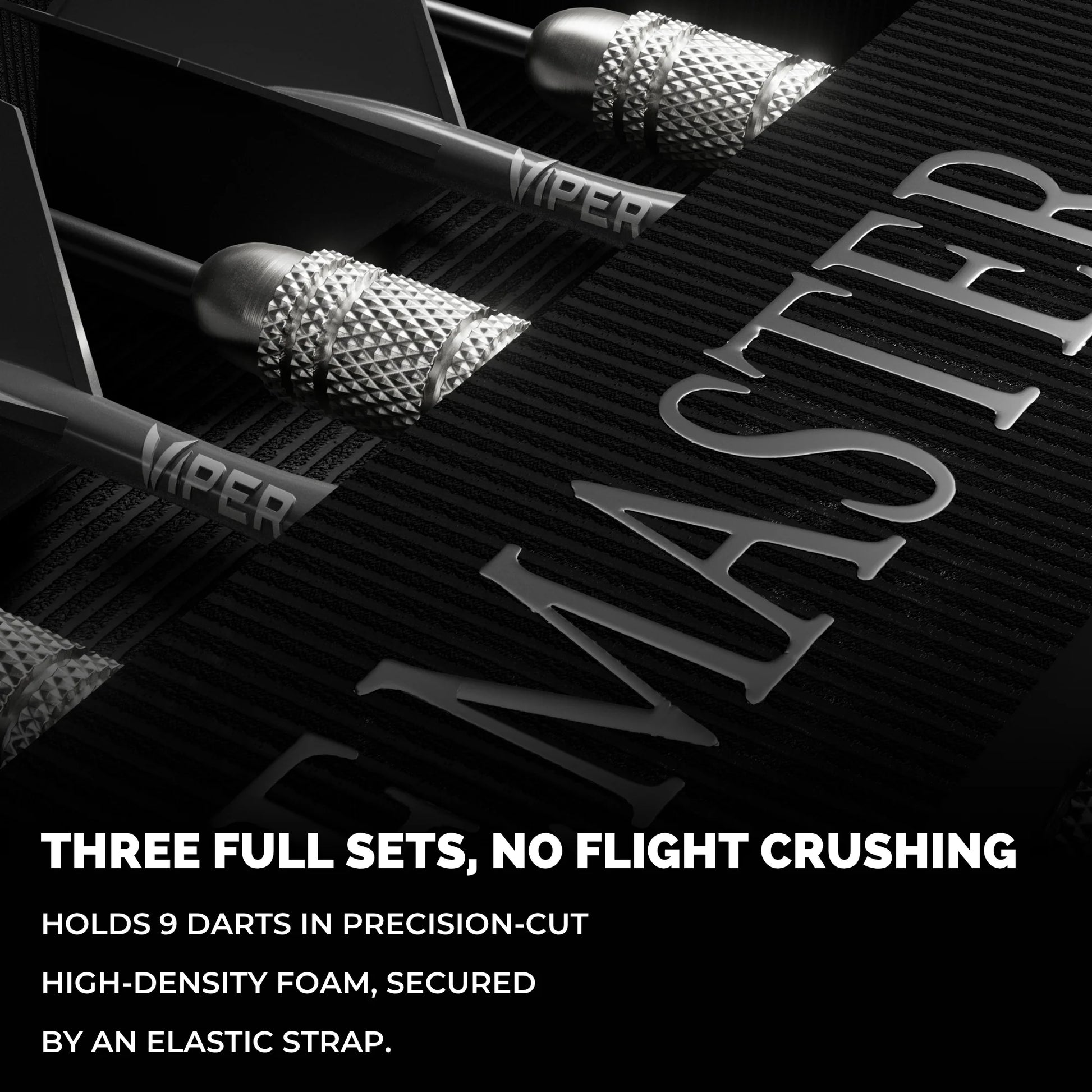 - 3 Full Sets, No Flight Crushing – Holds 9 darts in precision-cut high-density foam, secured by an elastic strap.