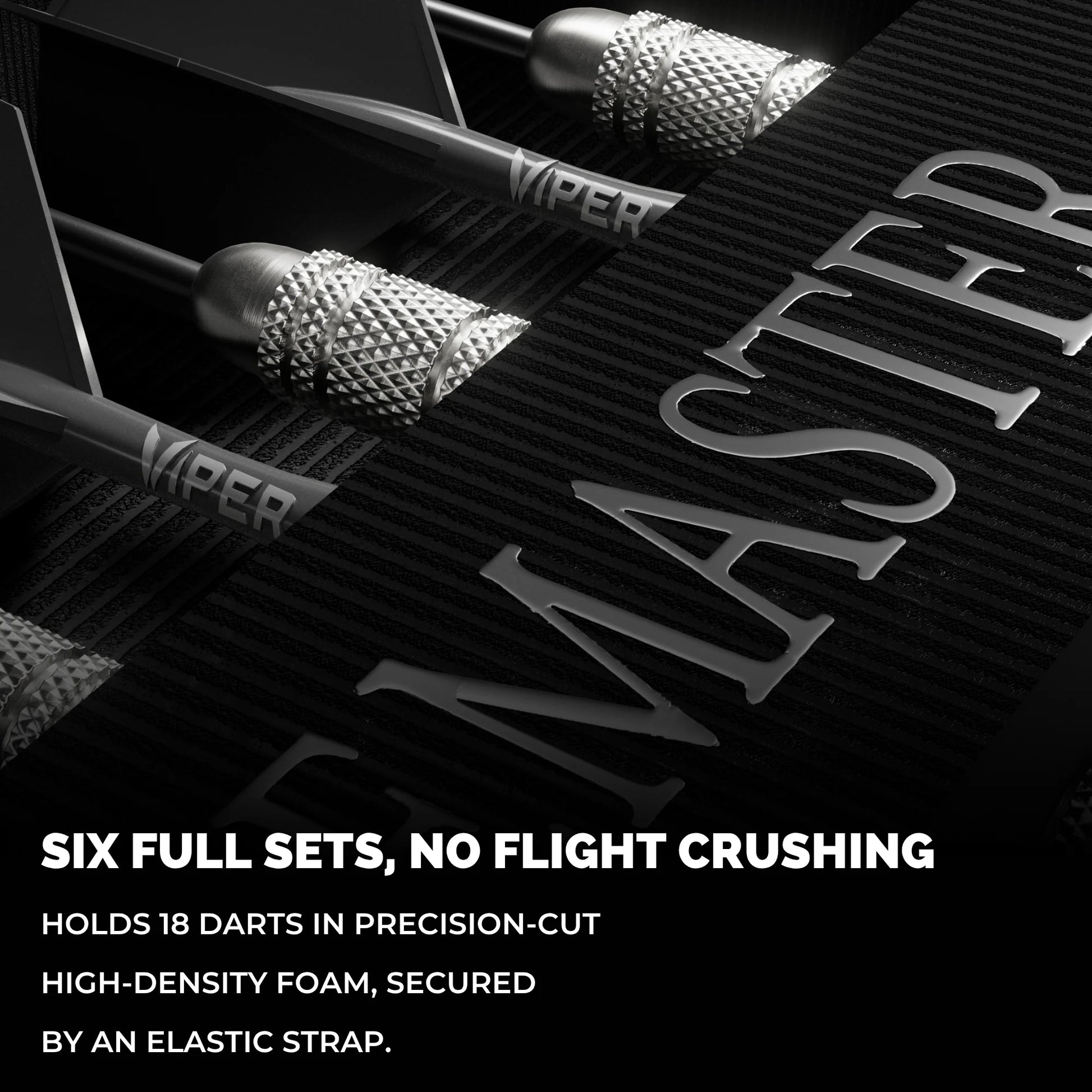 - 6 Full Sets, No Flight Crushing – Holds 18 darts in precision-cut high-density foam, secured by an elastic strap.