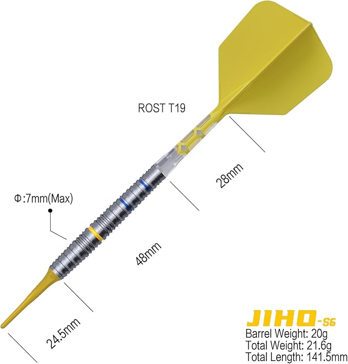 CUESOUL JIHO S6 20 gram 90% Tungsten Soft Tip Dart Set w/ ROST T19 Flight