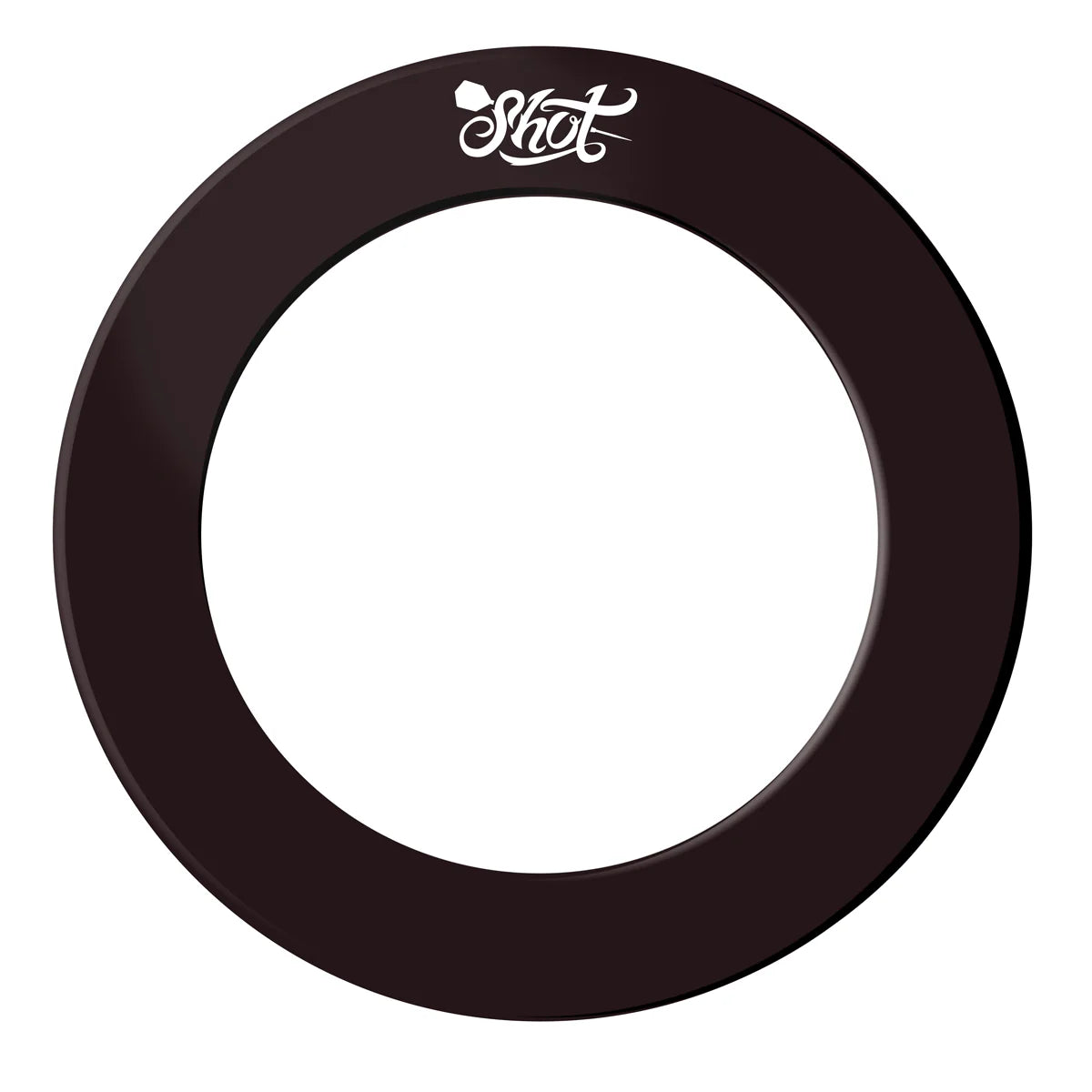 Protect your walls from stray steel tip darts with the heavy-duty professional one-piece dartboard surround from Shot Darts. The durable injection-molded polymer ring fits securely over all standard-sized dart boards and holds stray dart points securely. Weighing in at 2 kilograms, it's light and easy to install, just simply slip over your dartboard, and you're ready to go.