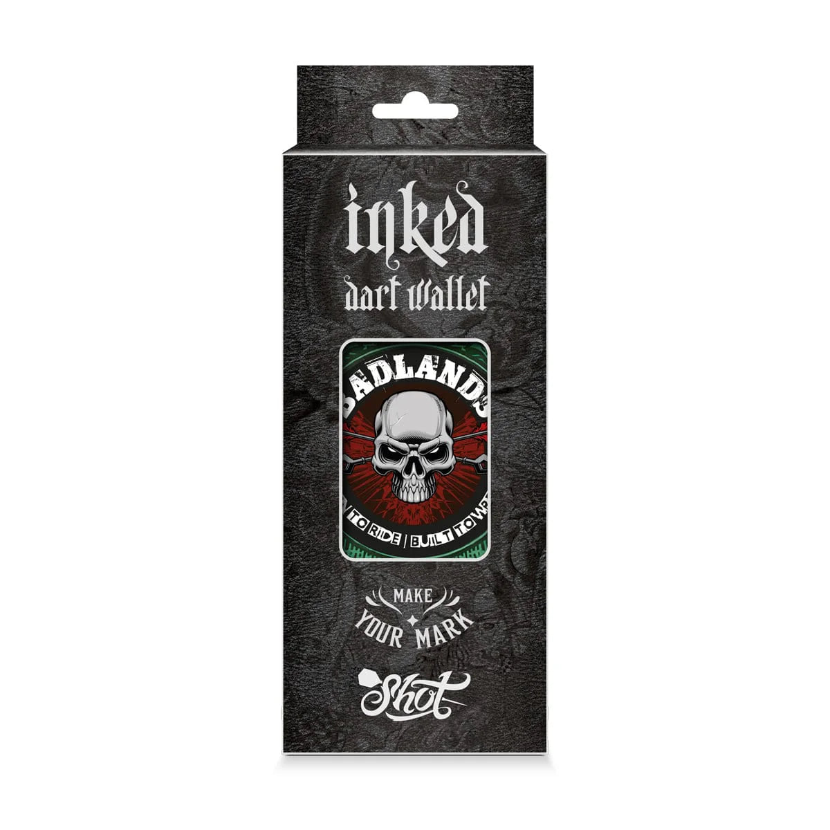 Wear your heart on your sleeve and your tribe on your hip. Just like body art, each case in the Shot Darts Inked range is embossed with its own markings. The Badlands Inked Dart Wallet protects your precious darts gear from shocks and knocks.