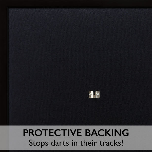 Accent your dart board and protect your walls with the Viper Dartboard Backboard! This attractive backboard installs quickly and easily onto any wall onto which you plan to hang a dartboard. This tough and durable backboard will stand up to the most wicked throws, should an errant throw slip by. The deep black cloth adorning this board will blend seamlessly with any decor, handsomely framed by an espresso finish. Take the guesswork out of deciding which board to purchase, as this backboard will fit perfectly with any regulation sized sisal dartboard. Easy-to-use mounting hardware makes installation a snap! Dartboard and darts are sold separately.