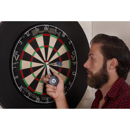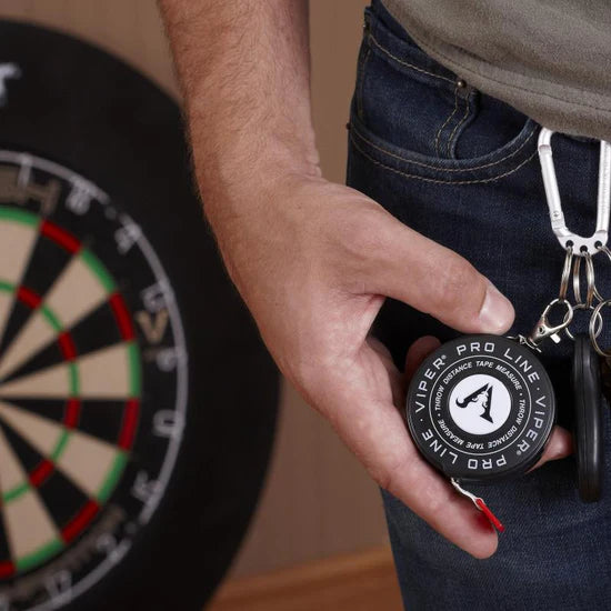 Take all the guesswork out of finding the perfect distance for your throwline with the Viper Pro Line Marker Tape. This convenient tool allows you to mark precisely where your throwline should be in relation to the front of your board. Engineered measurements ensure that your throw line is the correct regulation distance, ready for tournament play! The Pro Line tape is easy to use and requires no tools, simply attach the end of the tape to your board with a dart, find the distance you need and mark it! The tape then folds back into its case for easy storage to any event!