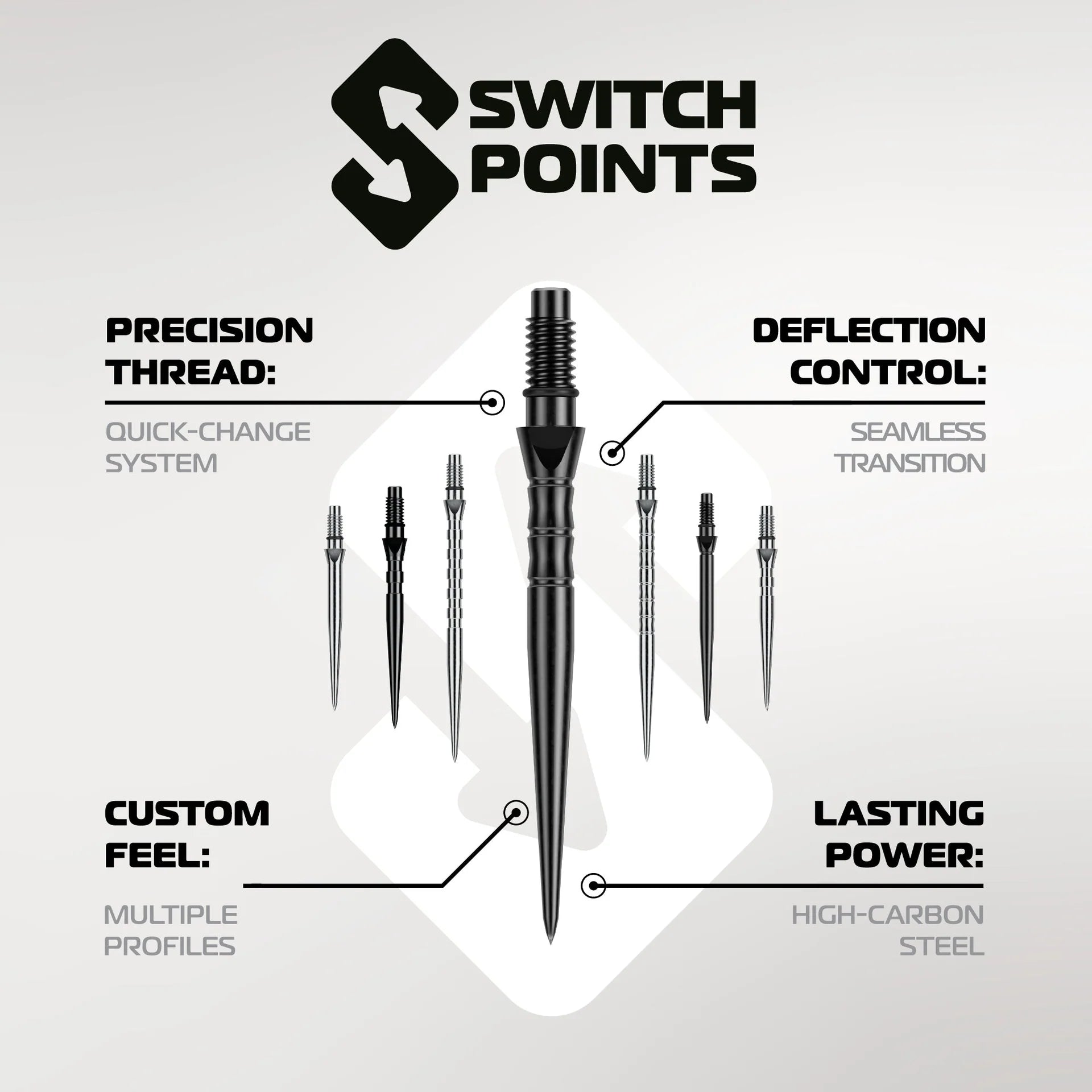 Each Switch Point is crafted from hardened, high-carbon steel for maximum strength, then plated for enhanced durability and corrosion resistance - giving you a setup that performs and lasts at the highest level.